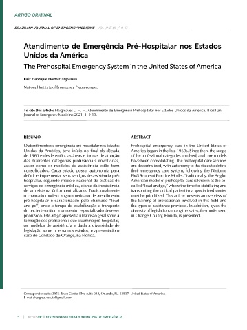 To cite this article: Hargreaves L. H. H. Atendimento de Emergência Prehospitalar nos Estados Unidos da America. Brazilian