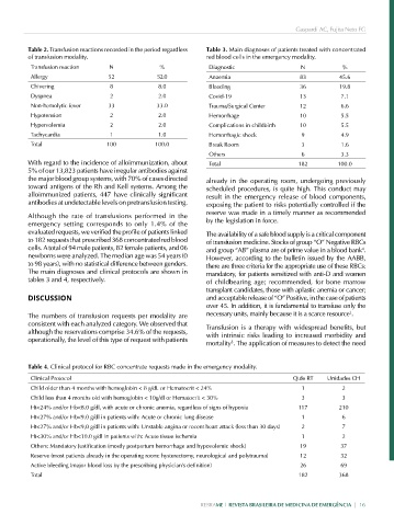 Table 4. Clinical protocol for RBC concentrate requests made in the emergency modality.