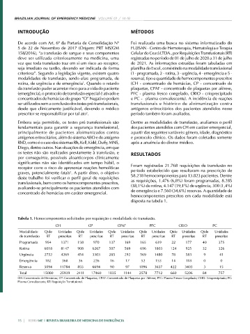 concentrado de hemácias em caráter emergencial. de emergência e 7.560 (34,6%) reservas. A quantidade de