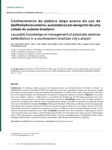 desfibriladores externo-automáticos em aeroporto de uma cidade do sudeste brasileiro. Brazilian Journal of Emergency Medicine
