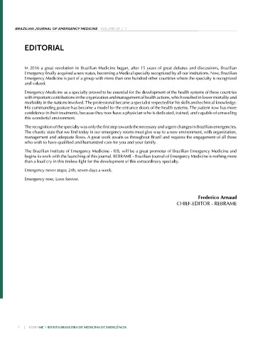 begins its work with the launching of this journal. REBRAME - Brazilian Journal of Emergency Medicine is nothing more