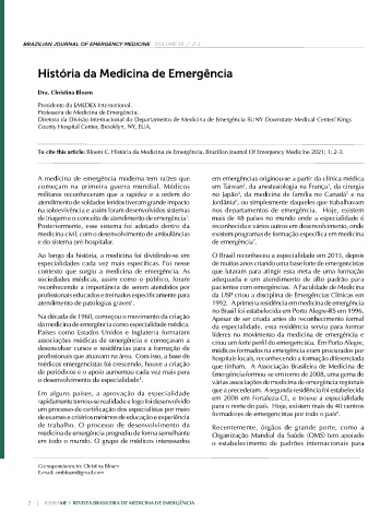 To cite this article: Bloem C. História da Medicina de Emergência. Brazilian Journal Of Emergency Medicine 2021; 1: 2-3.