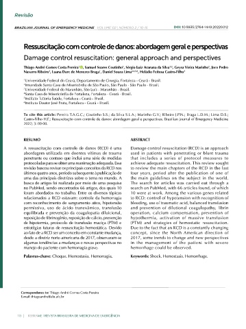Castro-Filho H.F.; Ressuscitação com controle de danos: abordagem geral e perspectivas. Brazilian Journal of Emergency Medicine