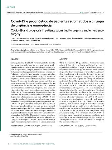 BRAZILIAN JOURNAL OF EMERGENCY MEDICINE VOLUME 02 | NÚMERO 2 / 2-9 DOI: 10.5935/2764-1449.20220011